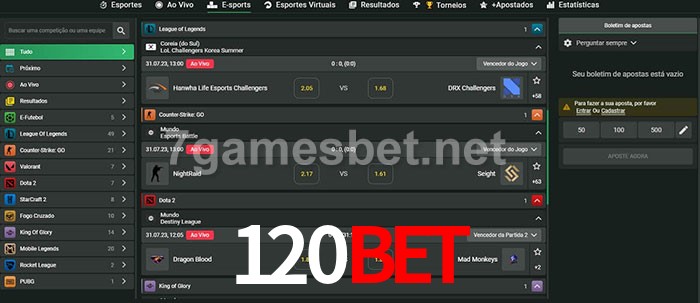 O 120bet oferece uma grande seleção de opções de apostas em e-sports com probabilidades competitivas
